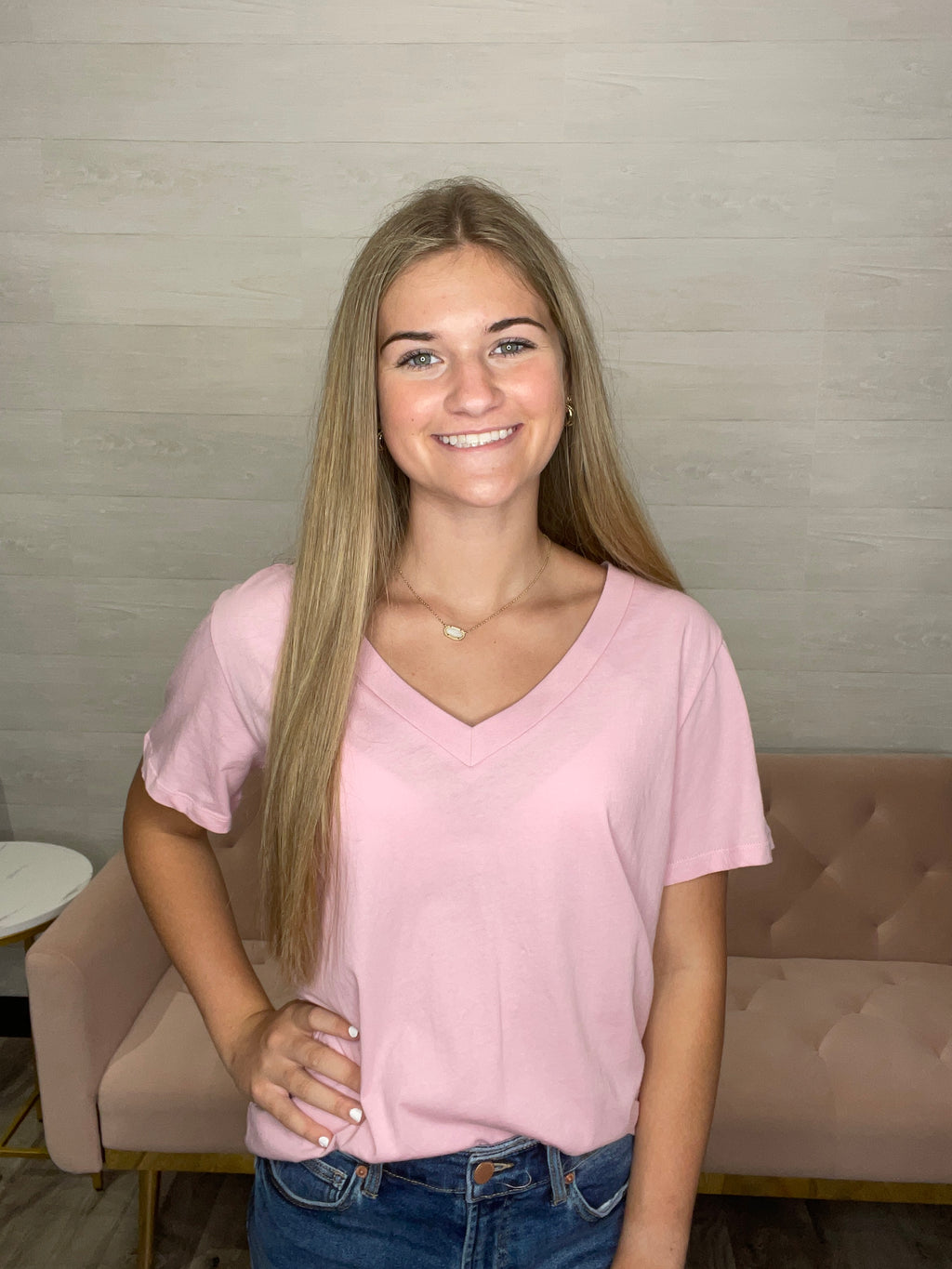 Girlfriend V-neck Tee in Peony