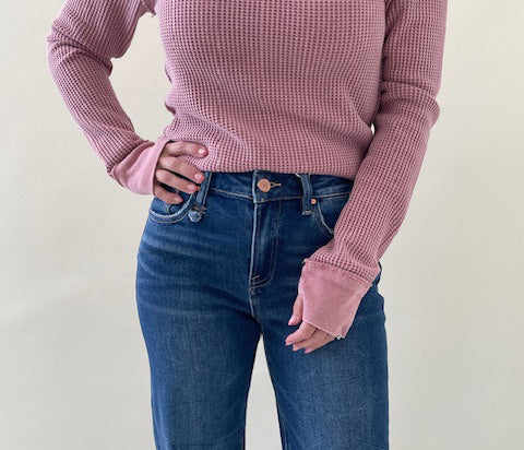 Ania Waffle Long Sleeve Top-Vintage Indigo