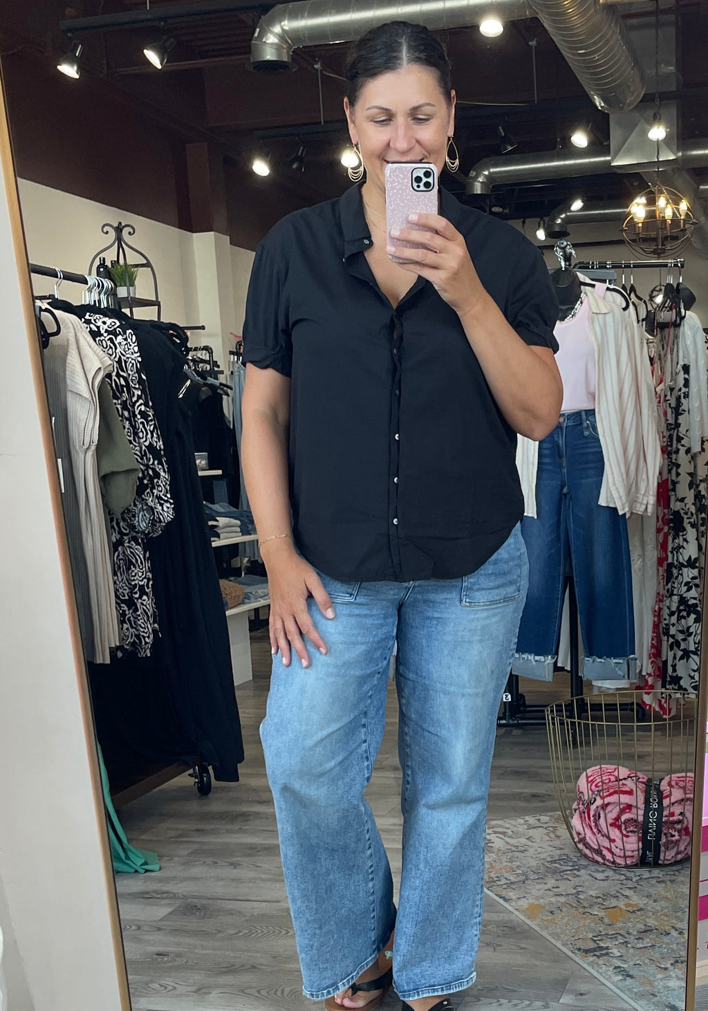 Benning Button Down Top-Black