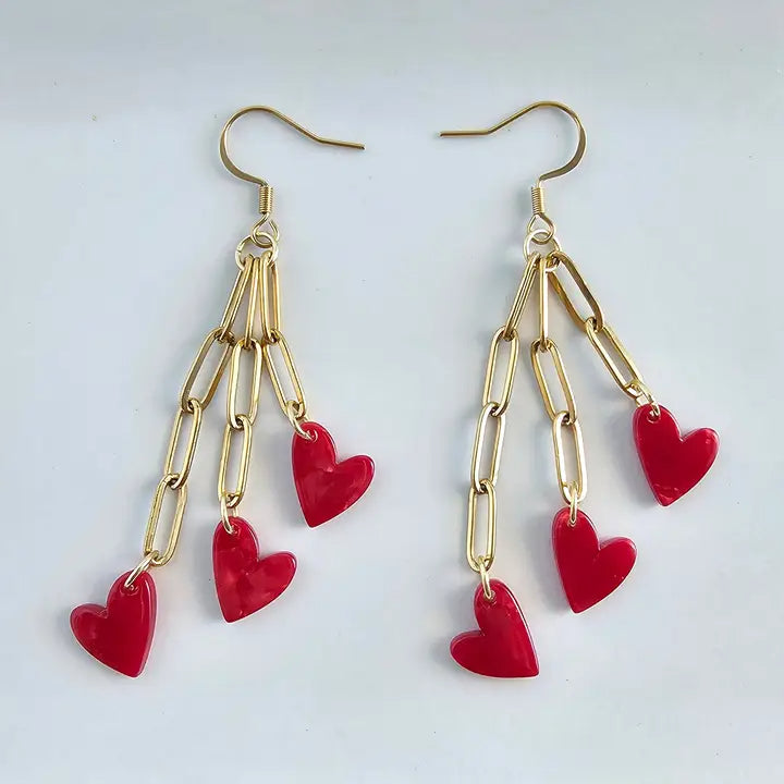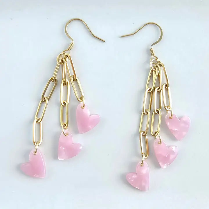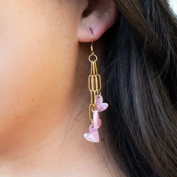 Add a playful twist to a classic design with the Heartstring Earrings! These statement paper clip chain earrings feature delicate plant-based acrylic hearts, bringing a fun and flirty vibe to any outfit. Perfect for making a subtle yet memorable style statement, they’re a must-have for heart lovers everywhere.