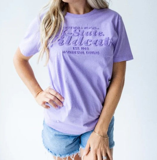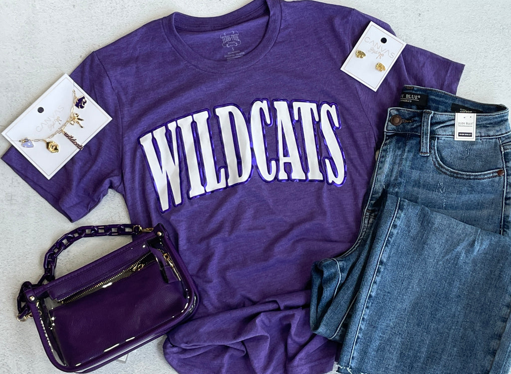 Wildcats Puff Metallic Arched Mascot Tee-Purple
