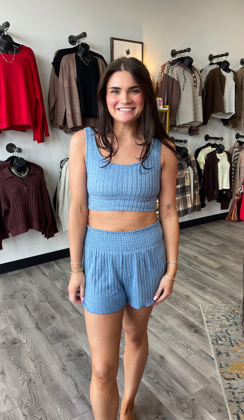 Dawn Smocked Rib Short-Oceanic Blue