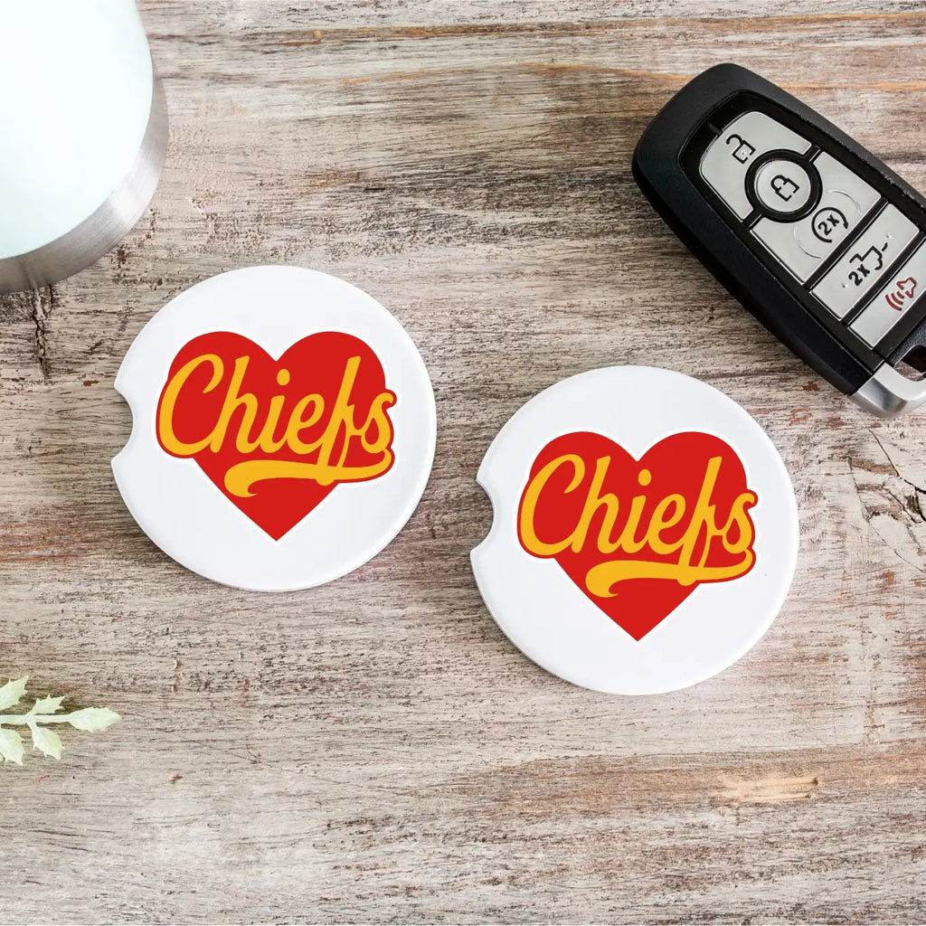 KC Football Chiefs Heart Car Coasters