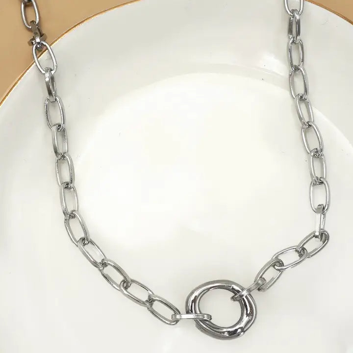 18K Stainless Steel Tarnish-Free Open Oval Necklace, irregular shape oval pendant necklace. Crafted from high-quality stainless steel with an 18K gold finish, this necklace is designed to resist tarnish and maintain its shine.