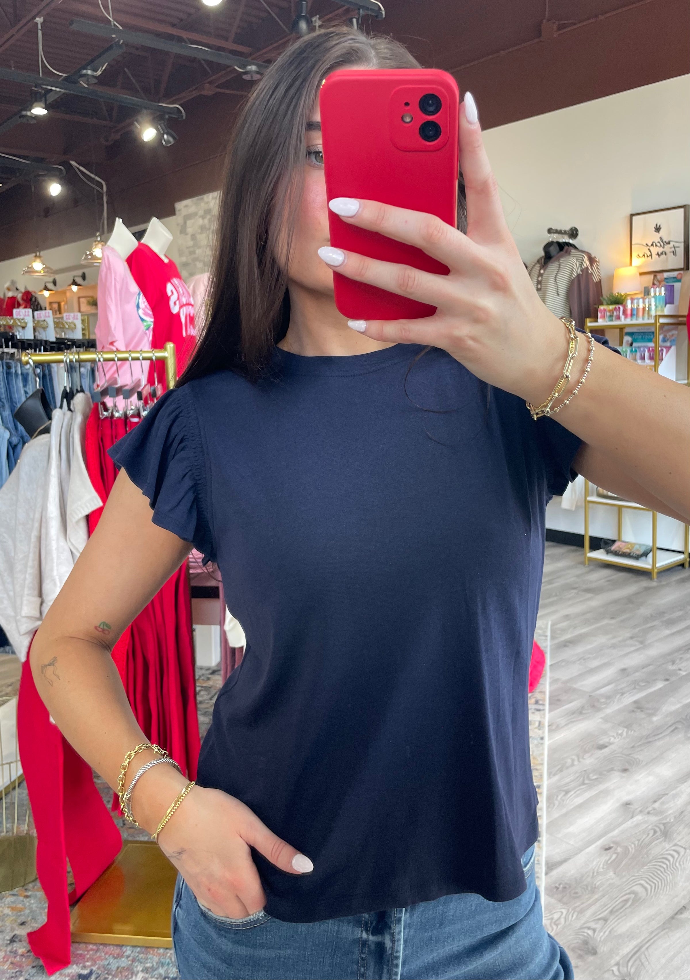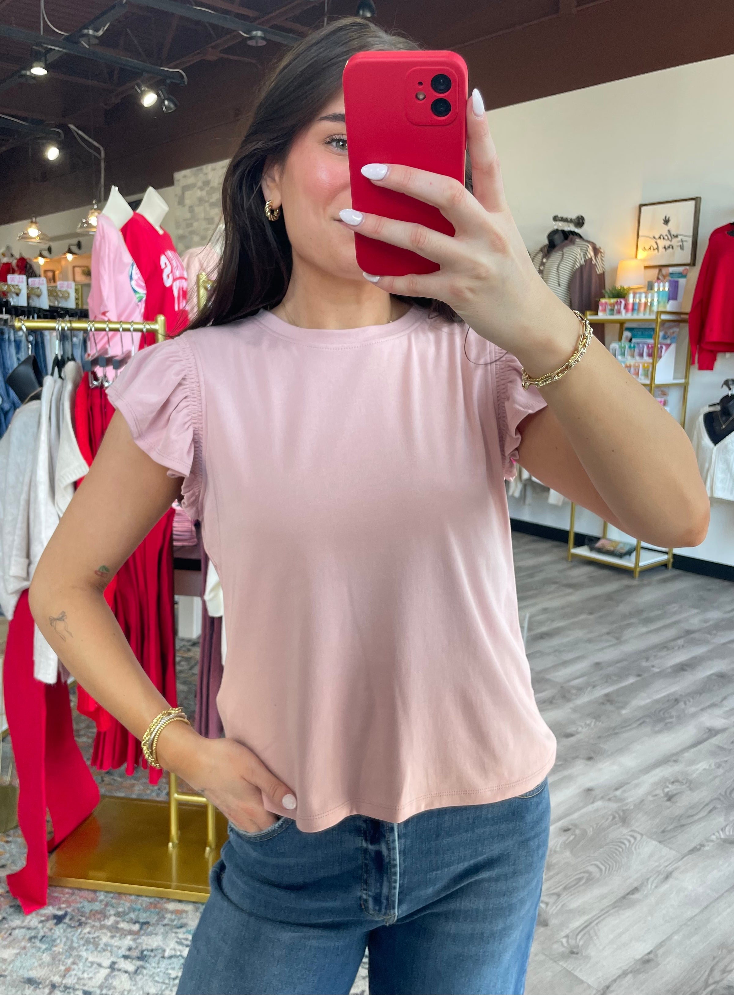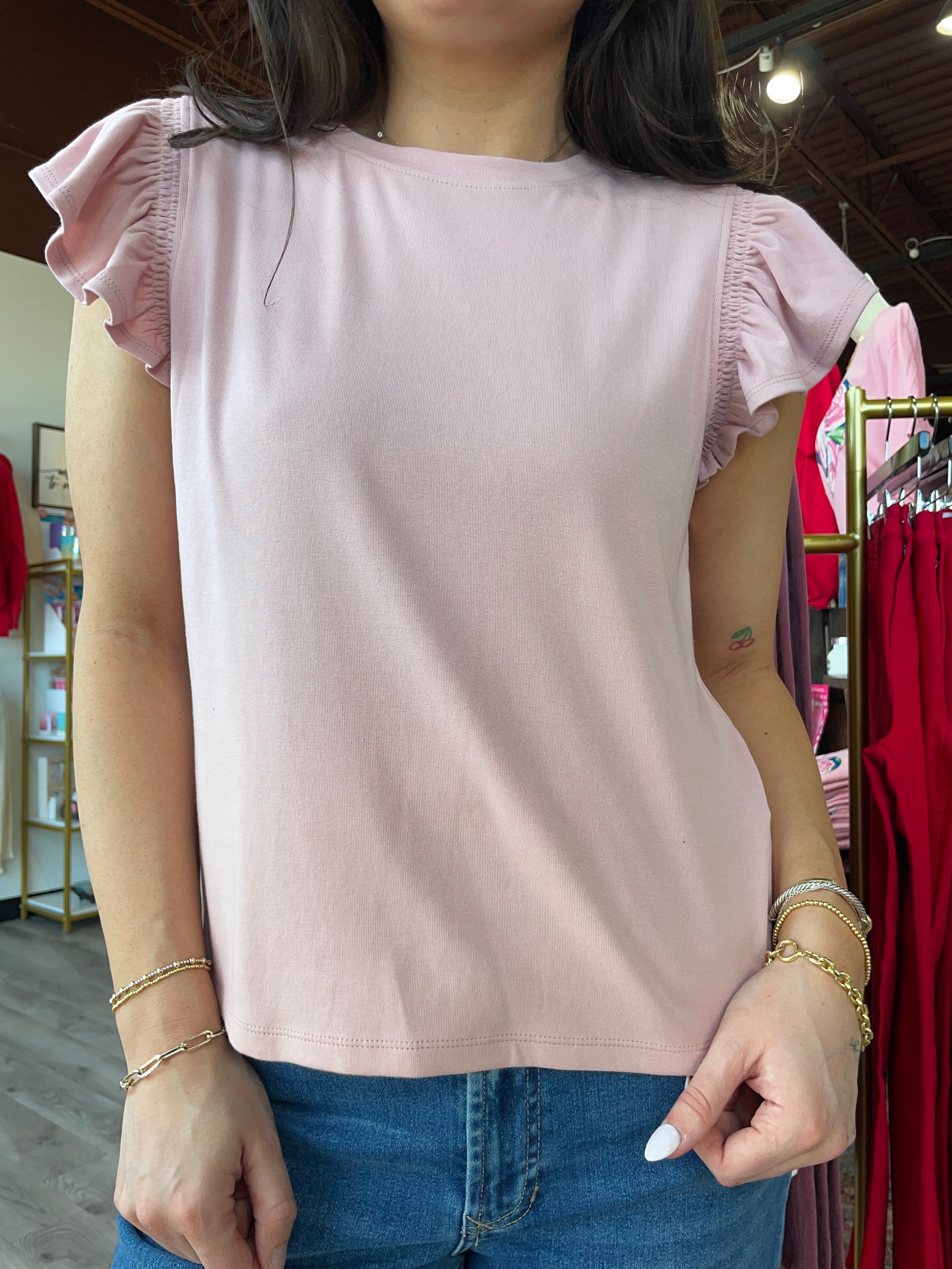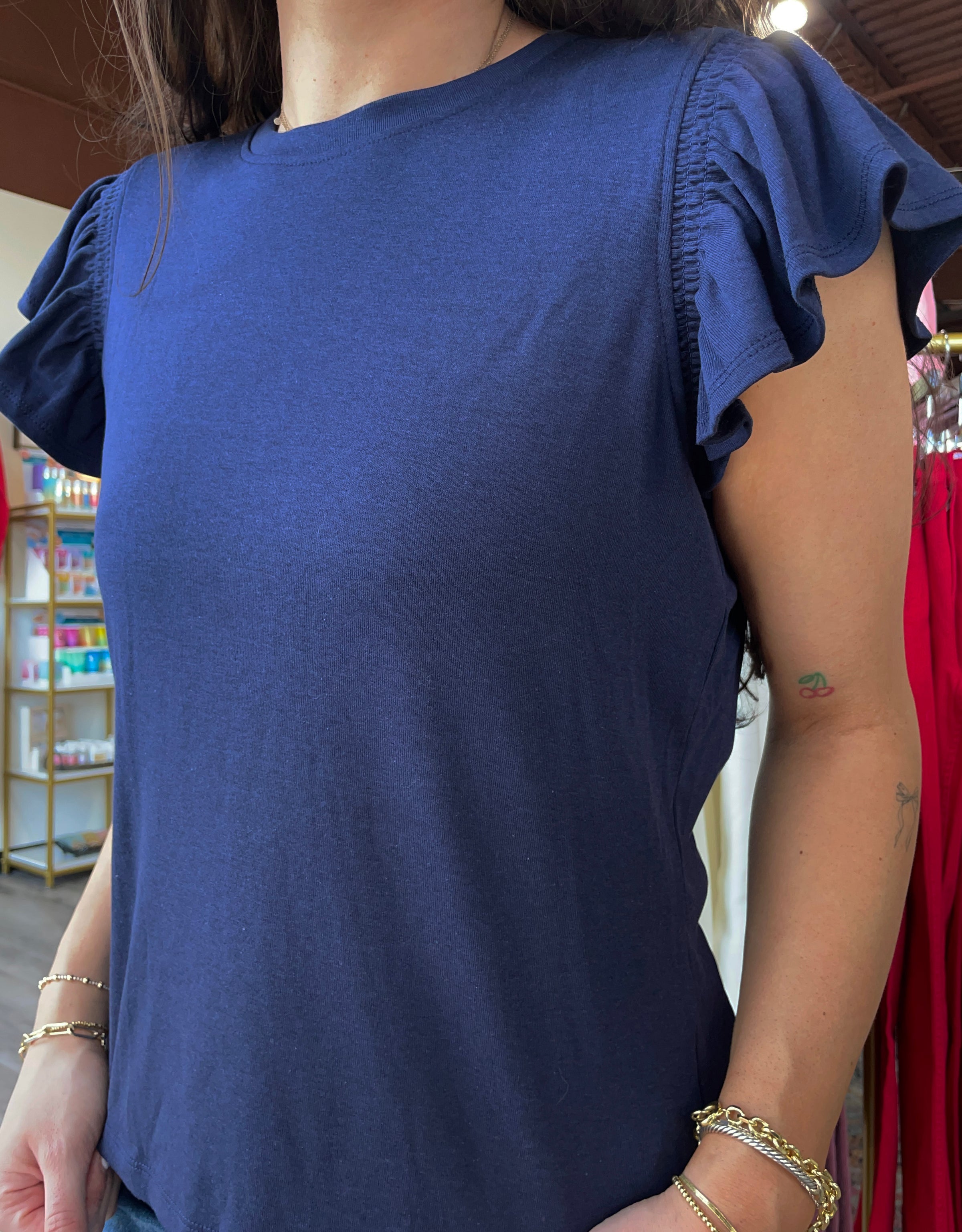 The Brielle Ruffle Top from Apricot is a great go to for spring and summer.  This top is made of the dreamiest fabric.  It's incredibly soft.  This versatile top can be worn casually or dressed up.  It features the prettiest ruffle sleeve detail.