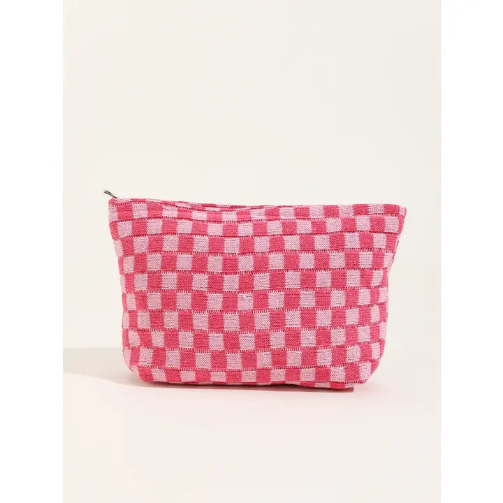Travel Checker Makeup Pouch-Hot Pink