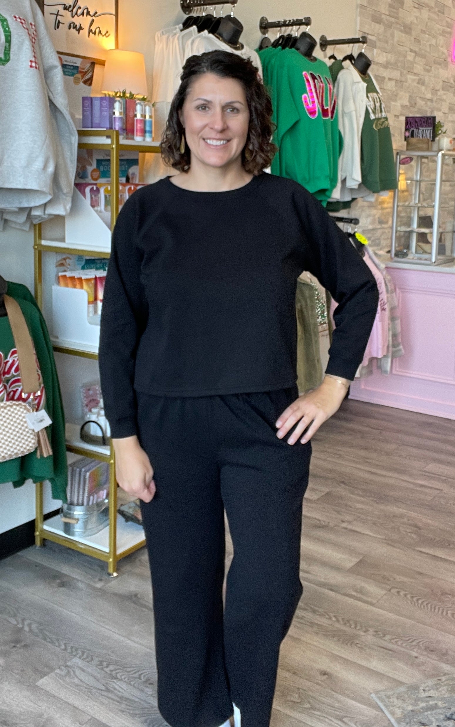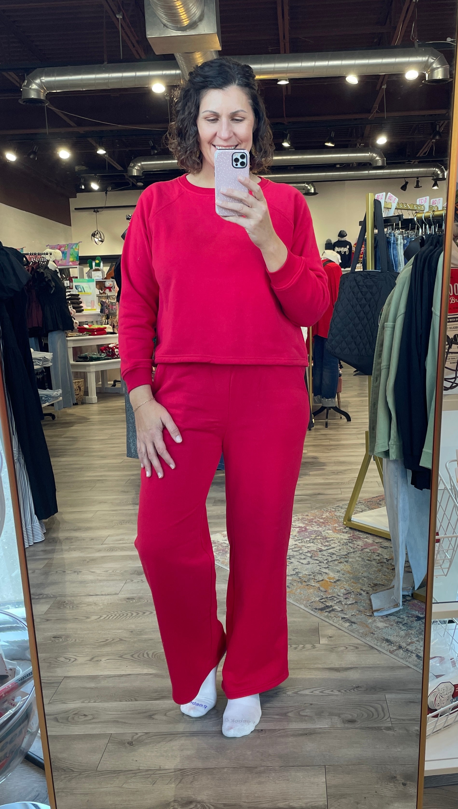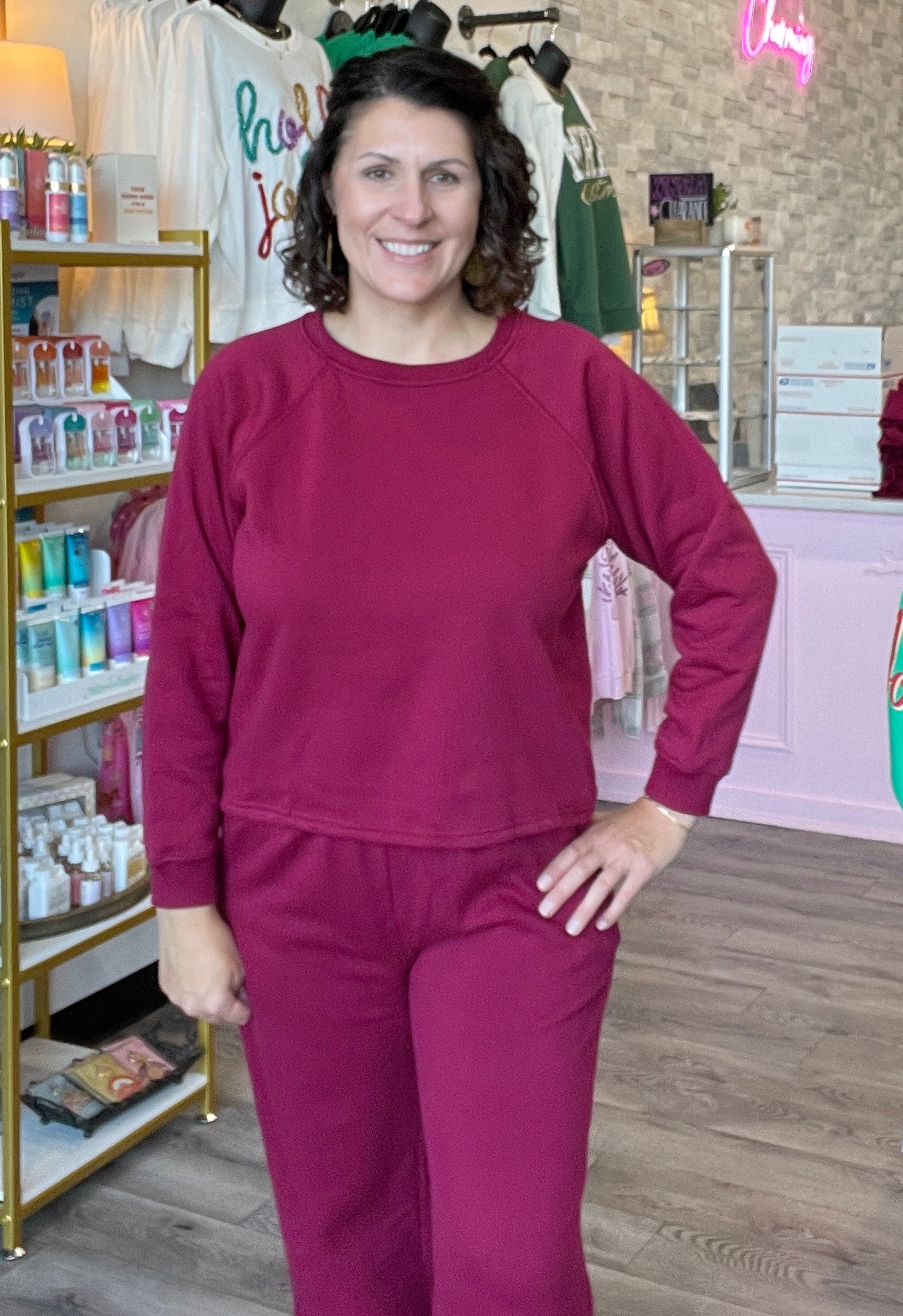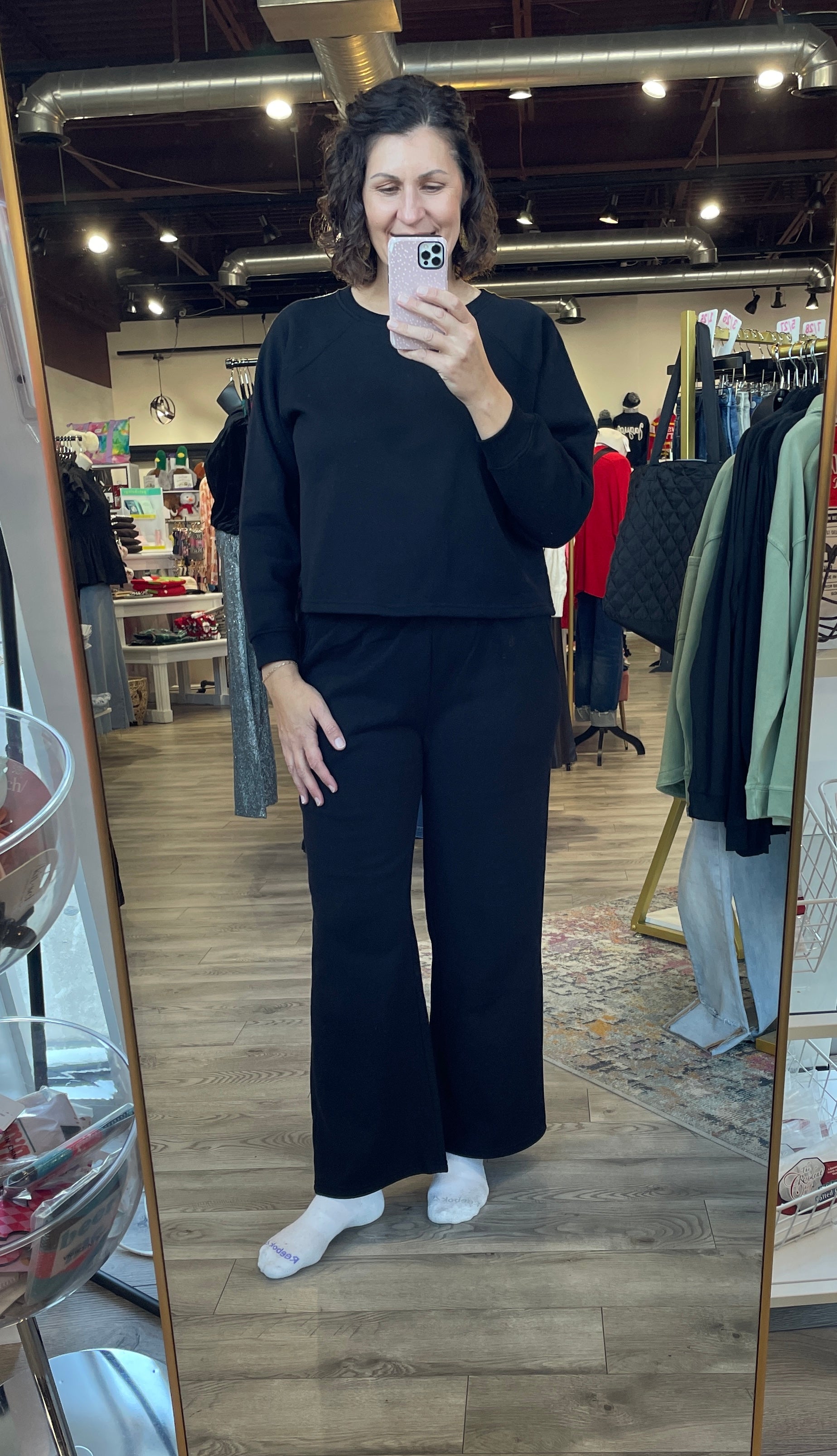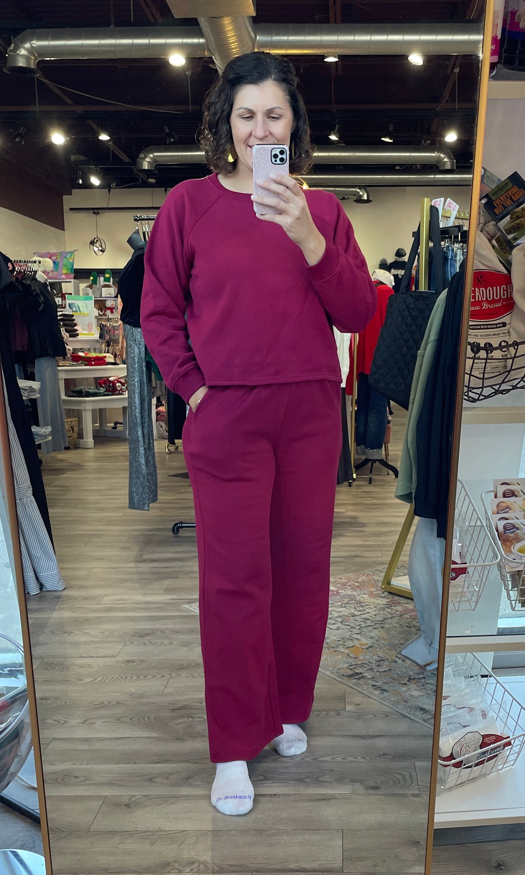 The Victoria Fleece Pullover & Pants Set features a semi-cropped sweatshirt and matching sweatpants, with pockets. It seriously feels like you're wearing a blanket. So cozy!! Great fit and perfect for lounging or being comfy on a day out.
