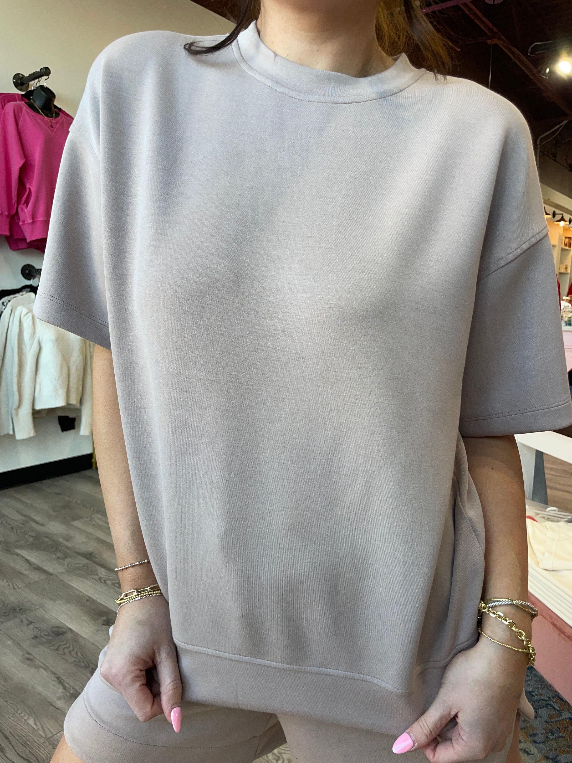 The Lauri Scuba Basic Top is made of the dreamy, super soft scuba fabric. You will be comfortable all day long in this amazing basic tee. We love tops that combine comfort and style and this one doesn't disappoint. Pair with our new Joslyn Scuba Shorts.