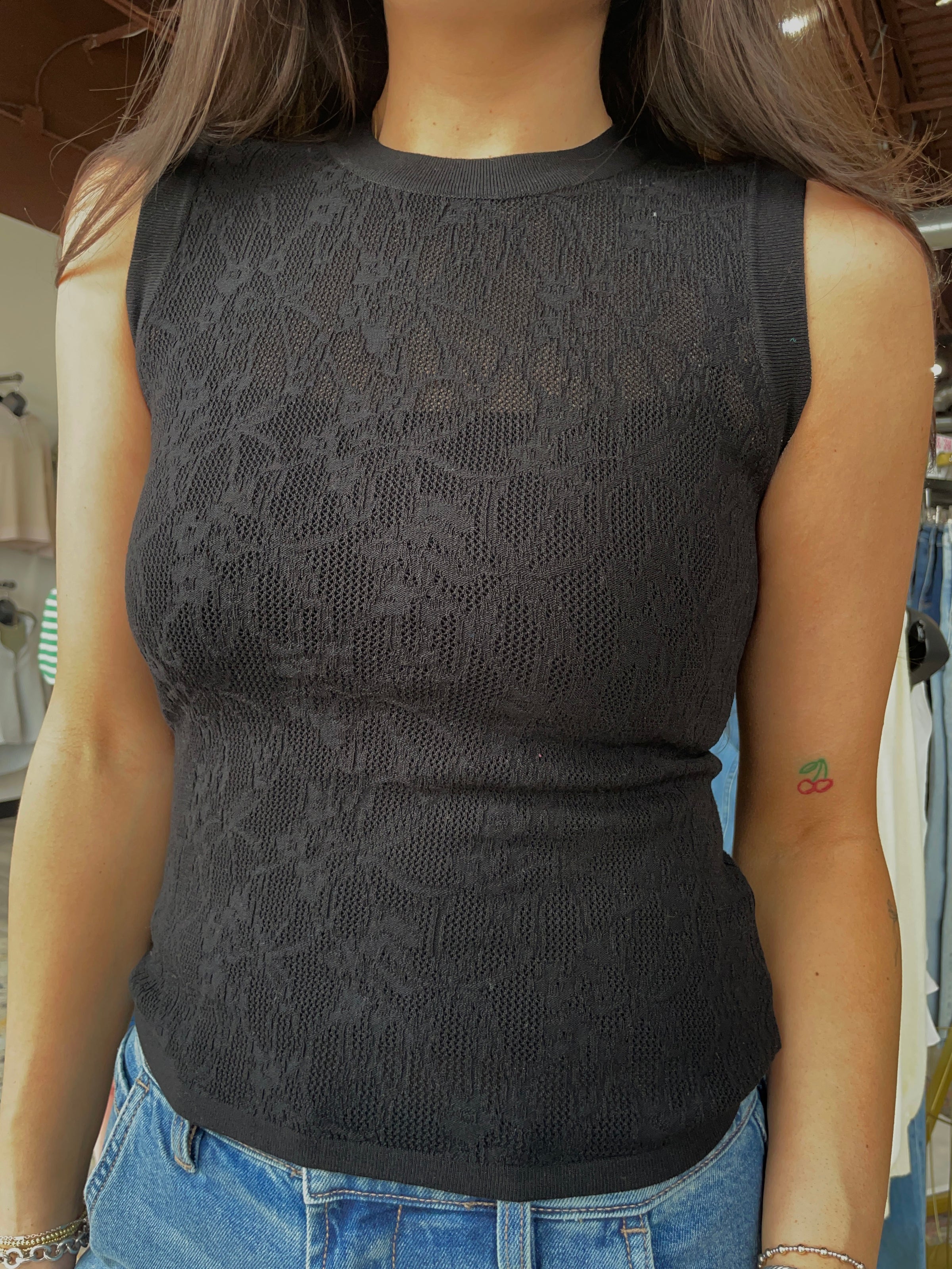 This sleeveless top made from a yarn blend has a lightweight feel making it comfortable and easy to wear. Its mesh detail makes it ideal for dressing up or down depending on your day.