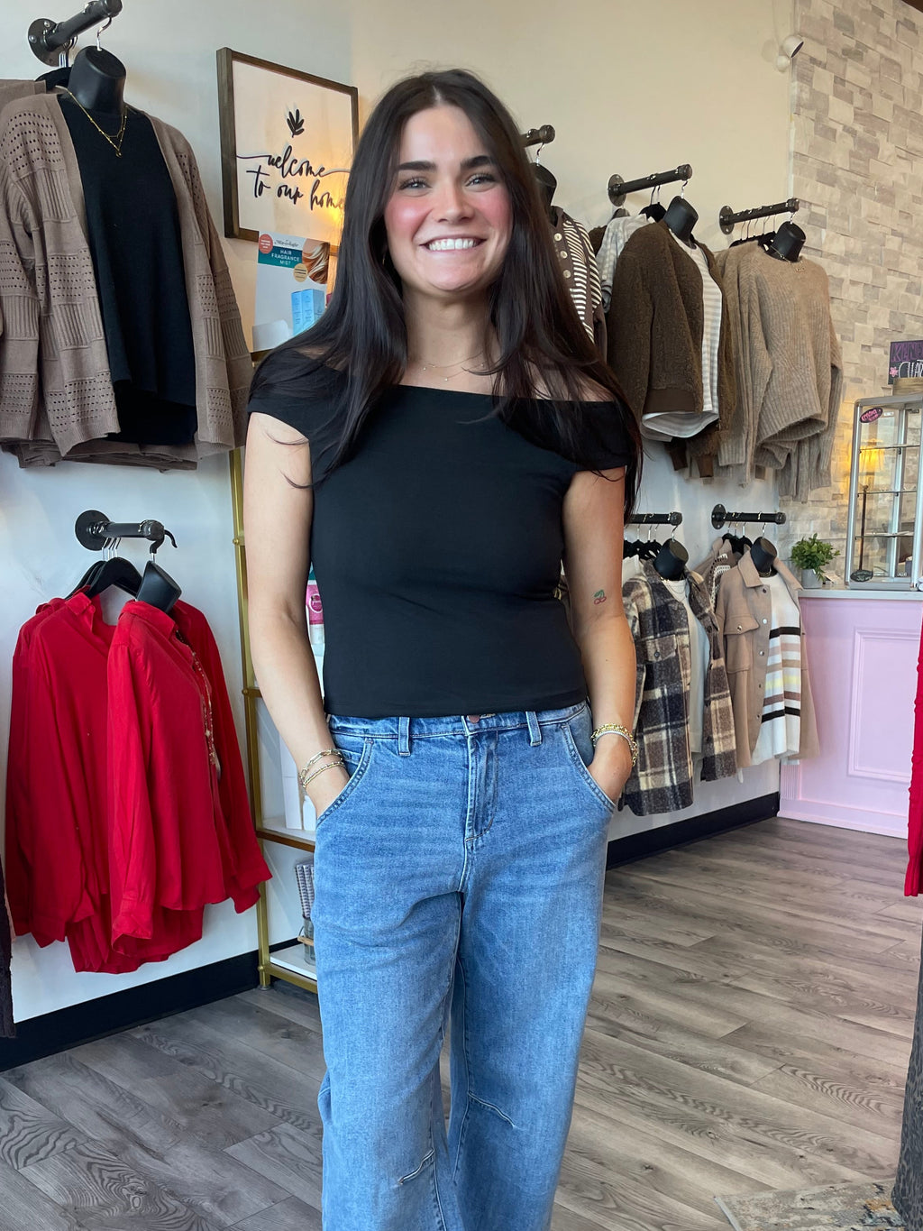 Second Skin Off Shoulder Top-Black