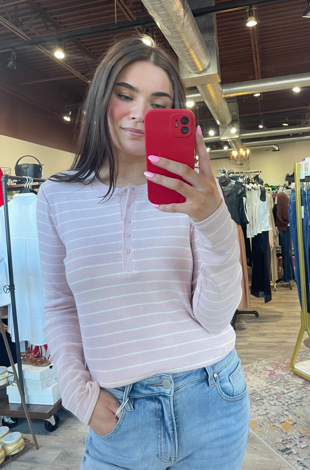 Ferris Henley Striped Top-Washed Pink