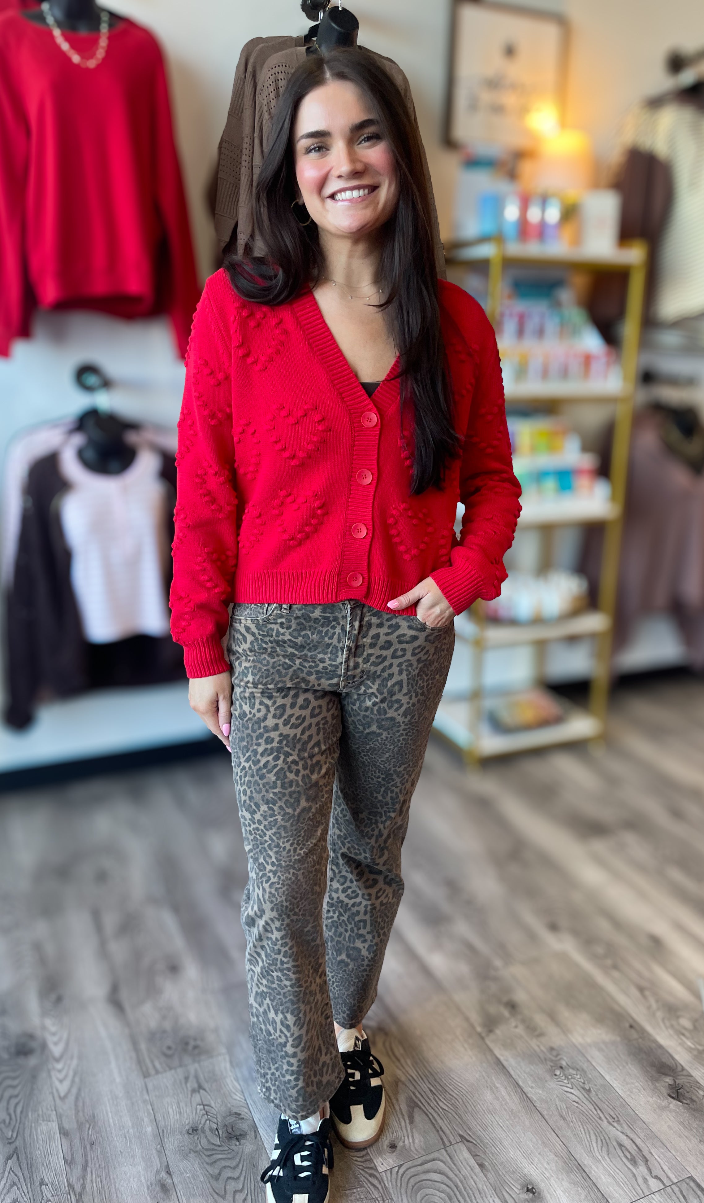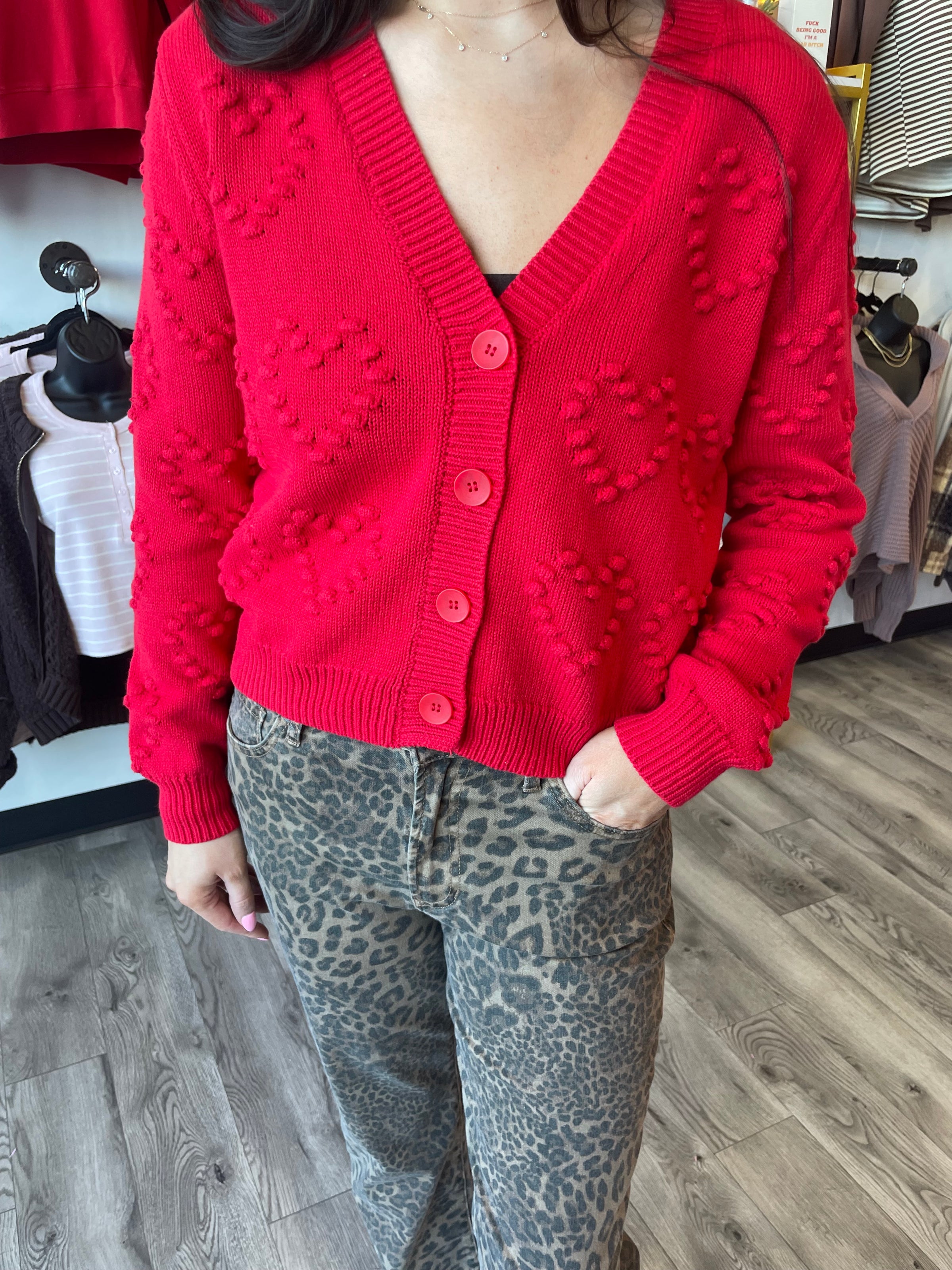 Made from breathable cotton yarn, this cardigan combines cozy texture with a relaxed fit that’s easy to layer. The dimensional heart-stitch detail adds a charming touch to a timeless silhouette you can dress up or down.