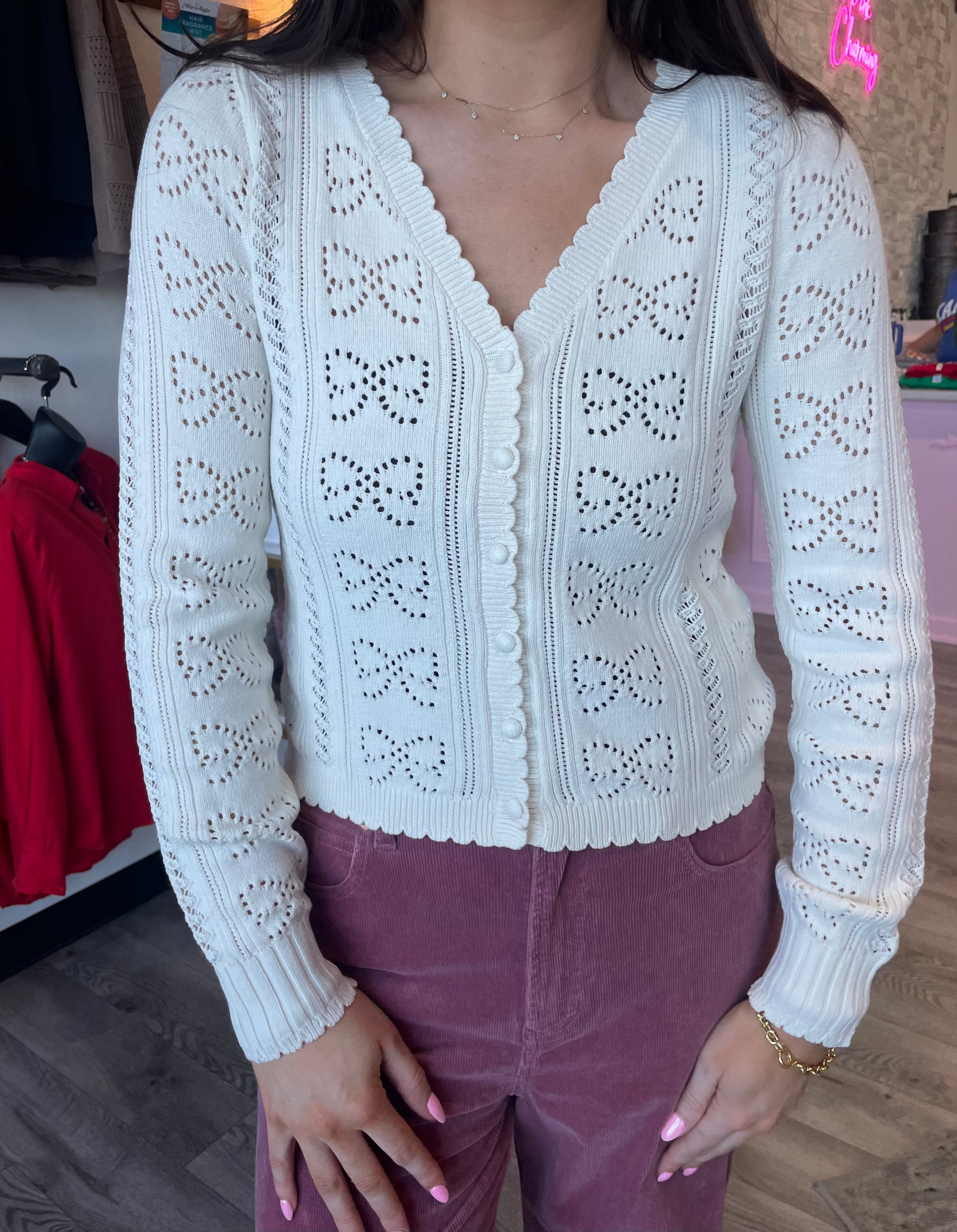 Delicate pointelle stitching and a lightweight EcoVero yarn give this cardigan a feminine, elevated feel. The button-front design fits close to the body, so you can wear it as a top or layer it over a cami for a soft, refined look.