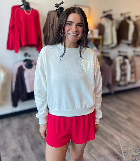 This plush cotton-blend sweatshirt from Z Supply wraps you in softness with tonal heart appliqués that add a playful touch. Perfect for layering over your favorite lounge bottoms, it’s made for cozy nights and quiet mornings at home.