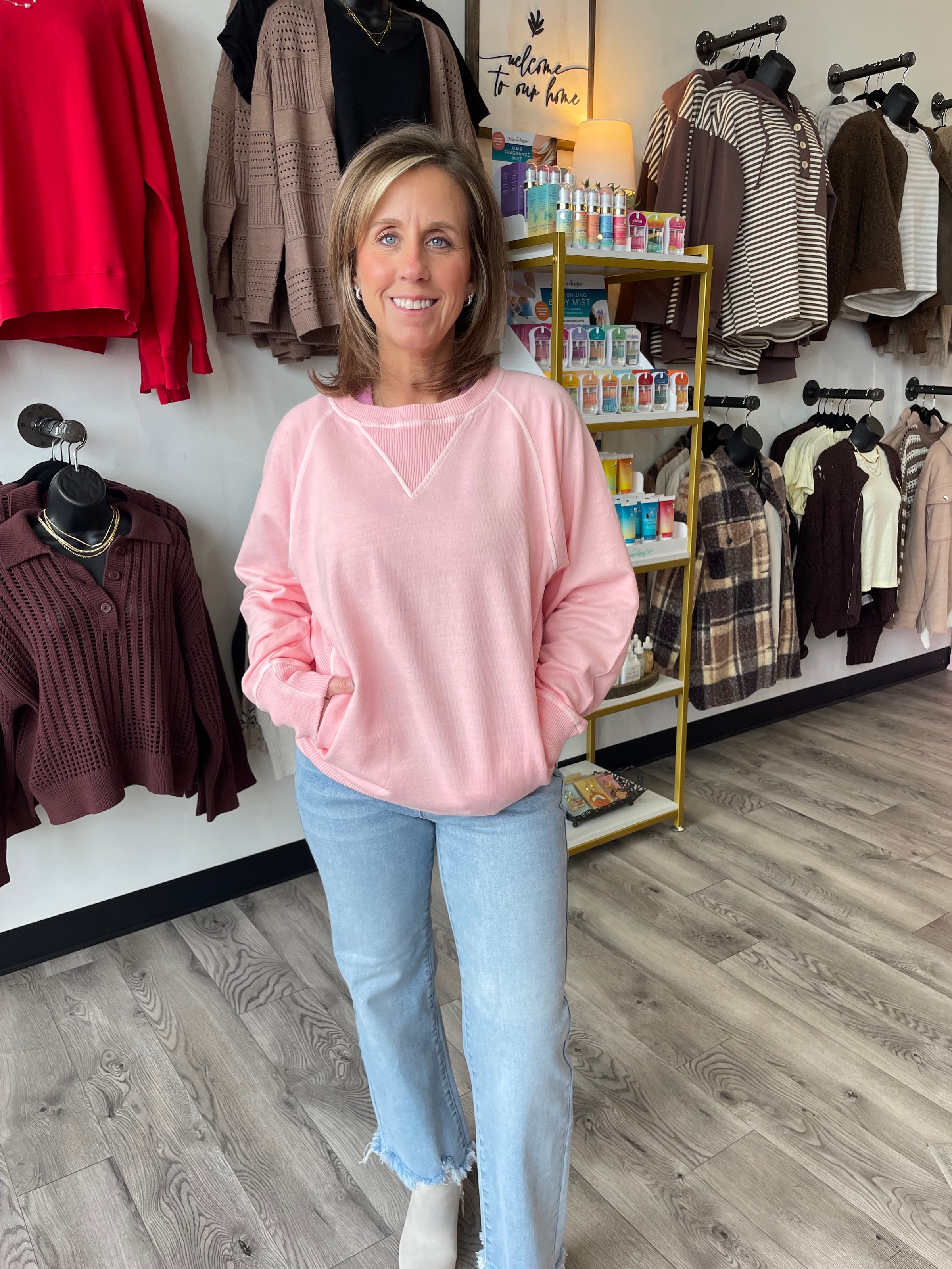 The Jamison French Terry Pullover is such a versatile top. This pullover is great for spring temps, lightweight and comfortable. It features side pockets and fits you perfectly in all the right places.