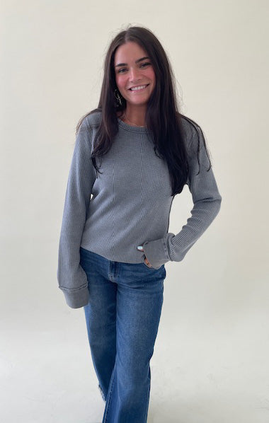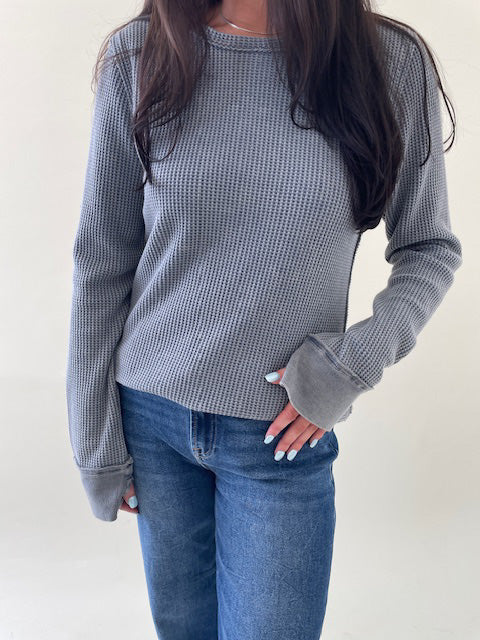 Ania Waffle Long Sleeve Top-Vintage Indigo