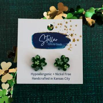 Green Mirror Shamrock Stud Earrings