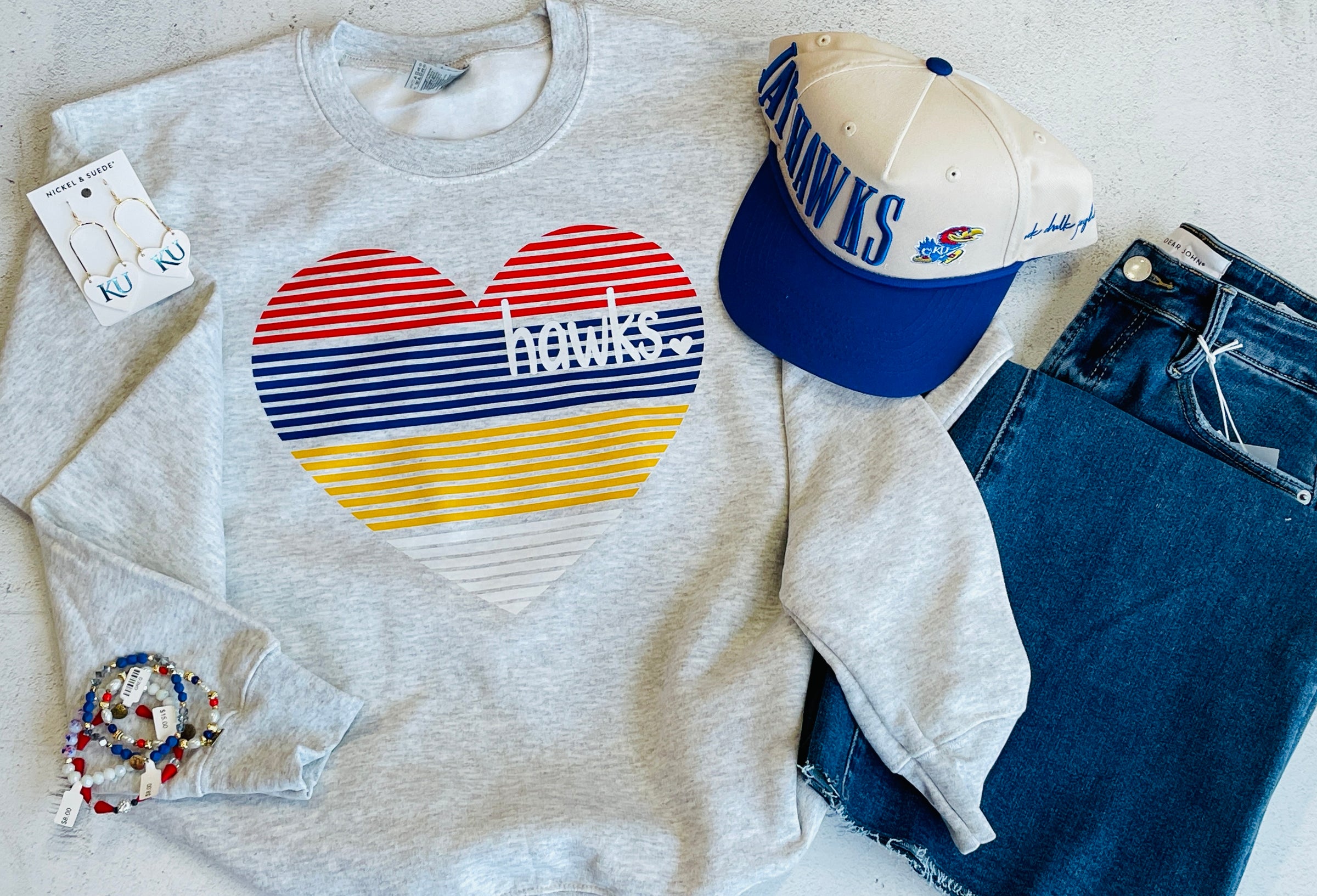 How about them Hawks?  The Hawks Stripe Heart Crewneck is simple and cute!  DTF printed on a Gildan softstyle crewneck, this sweatshirt will have you ready for the next game day!
