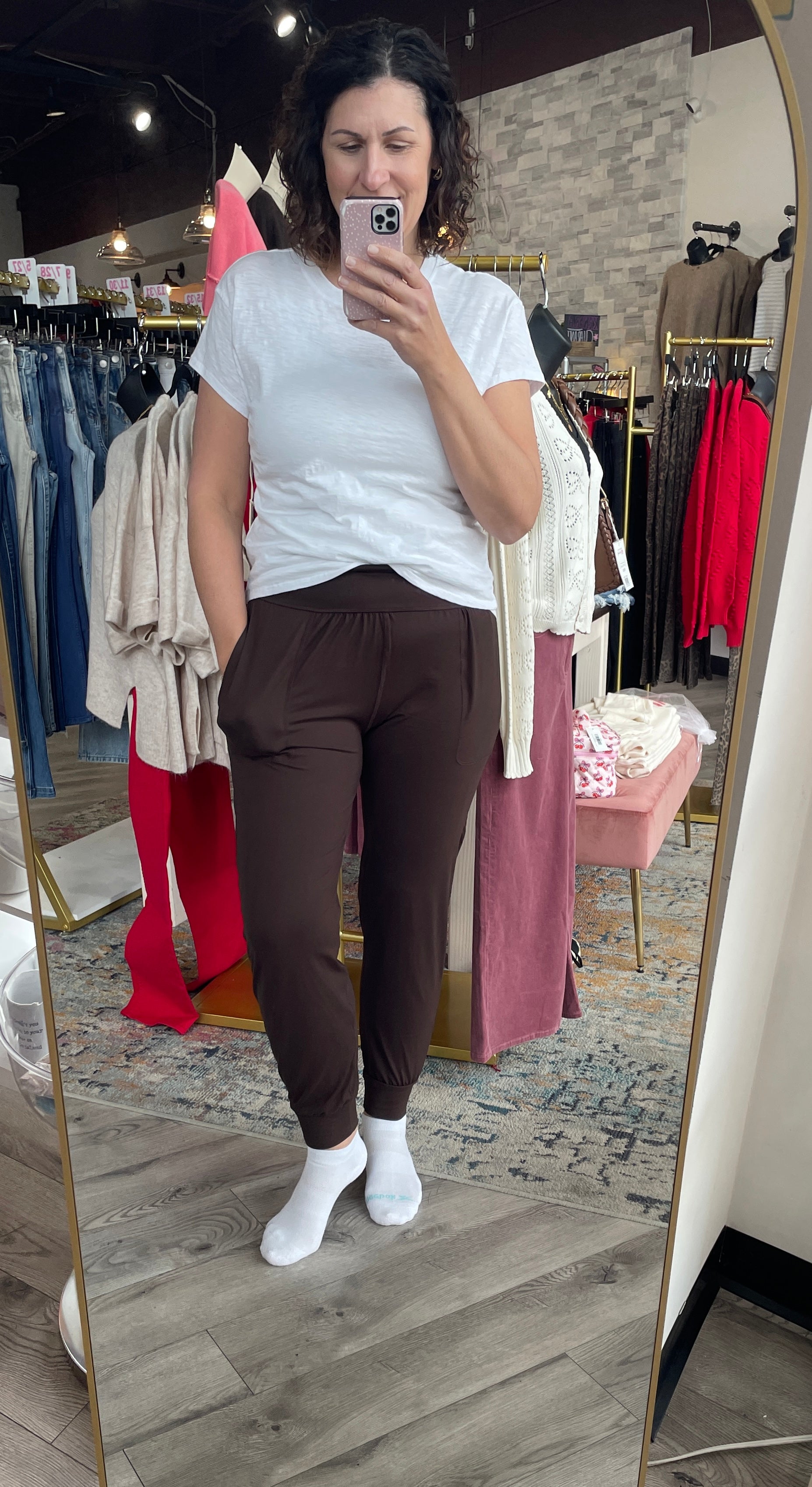 Cozy up in the Sydney Joggers. Made from a mix of materials to create the softest, most comfortable joggers on the market. Dress casually and look good in these buttery soft high waist joggers with pockets.