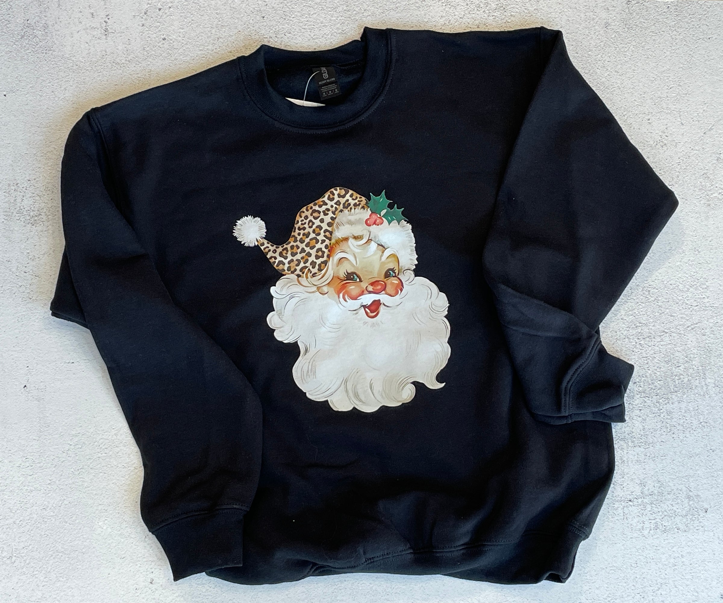 Spread some holiday cheer with this adorable Leopard Hat Santa crewneck.
